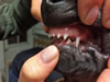 ...der Unterkiefer ist ca. 1 cm kürzer als der Oberkiefer, weshalb die unteren Eckzähne im Gaumen Löcher bohren.