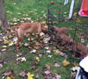 Die eben aufgehängten Bändel ziehen das Interesse aller Welpen auf sich.