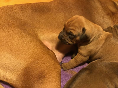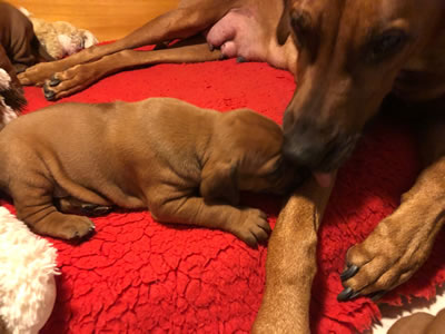 Rüde 4 kuschelt mit Mama